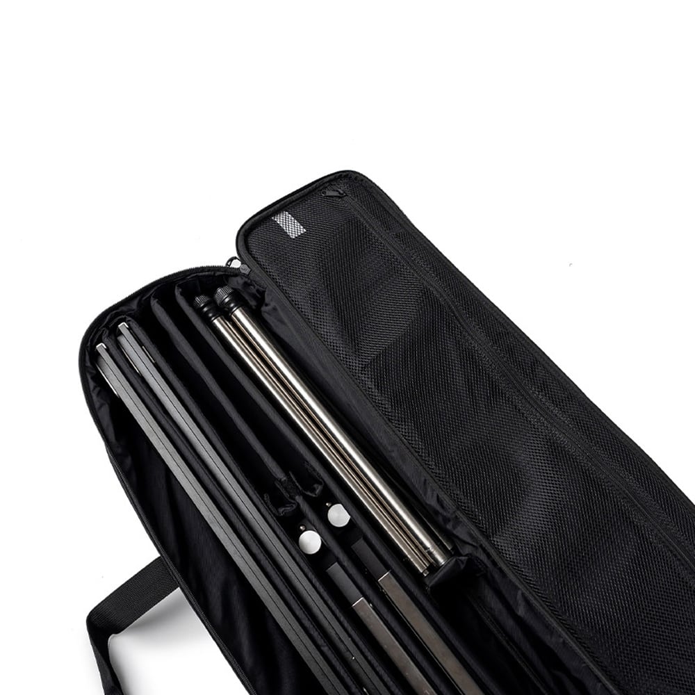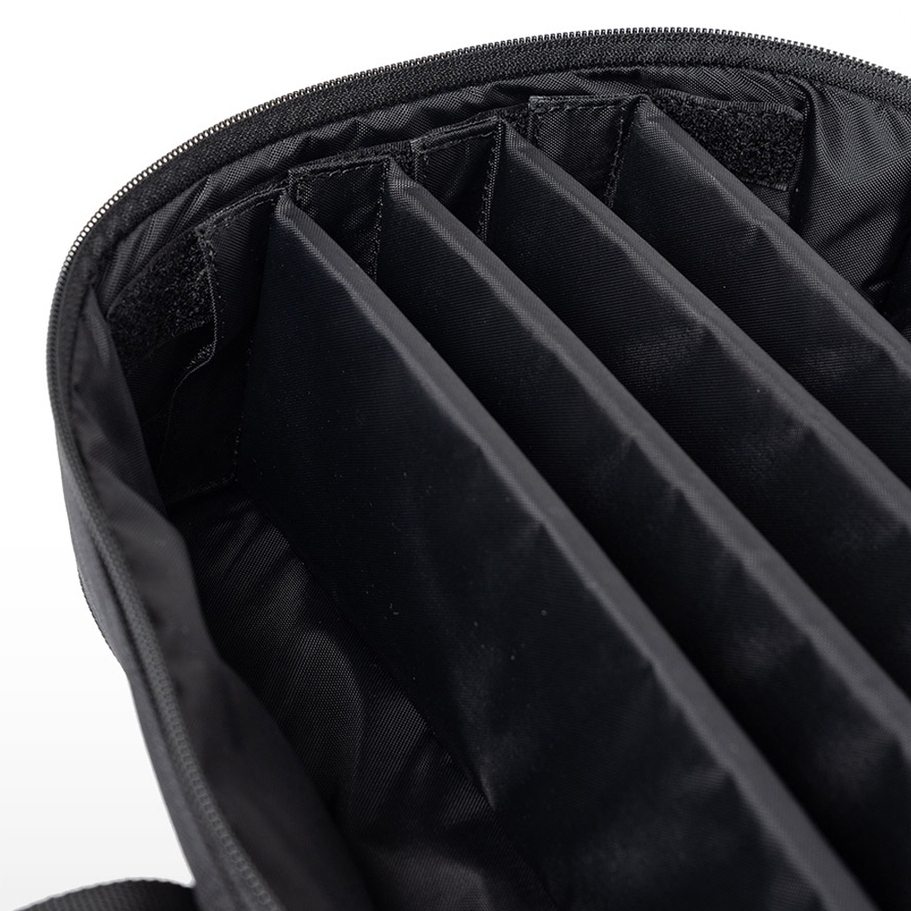 ・補強材入りの内部パーテーションにより形状を維持し、ベルクロ固定で安定した収納が可能です。