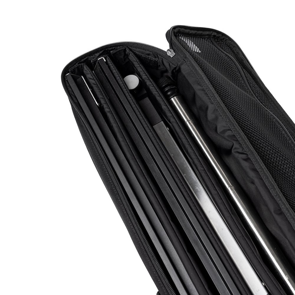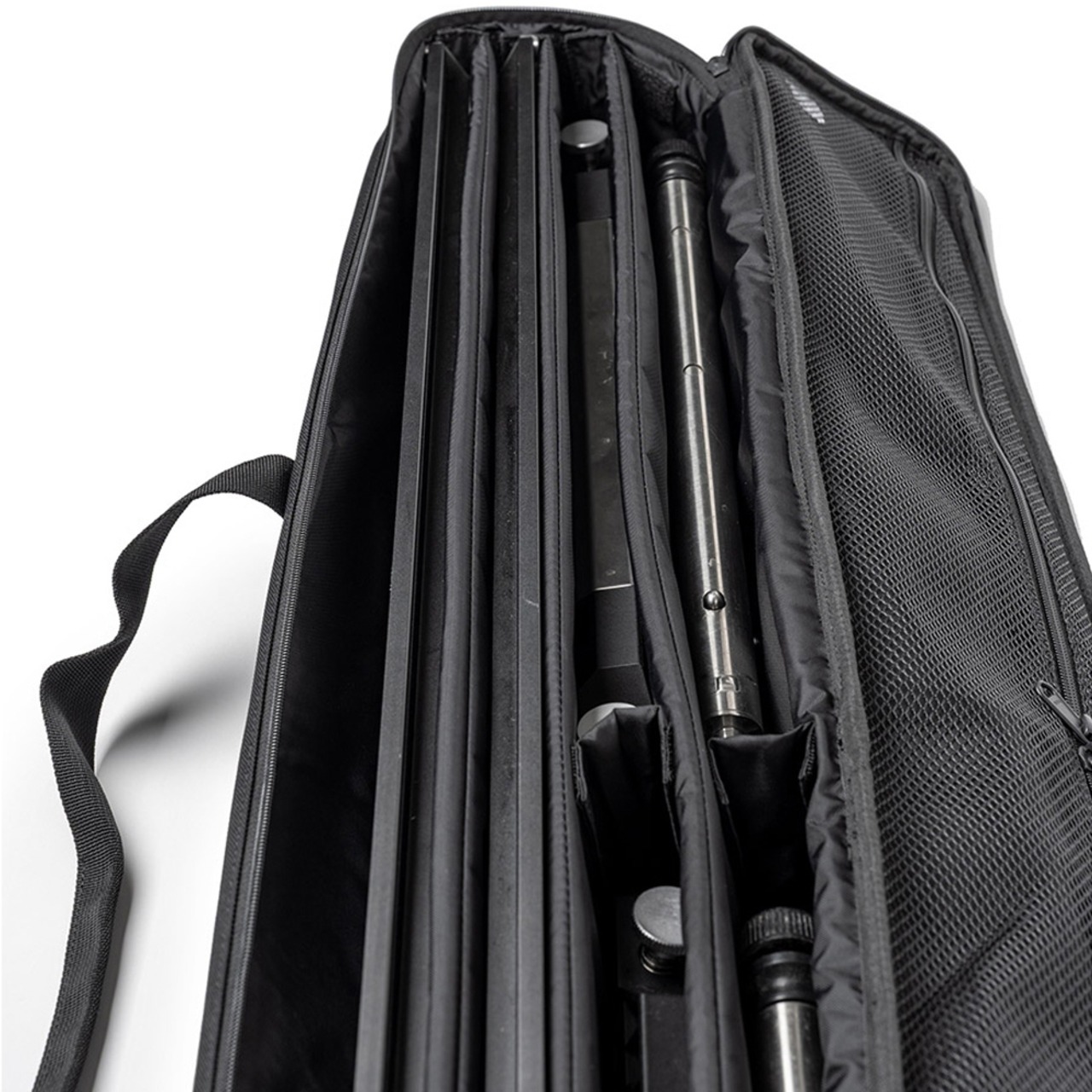 ・補強材入りの内部パーテーションにより形状を維持し、ベルクロ固定で安定した収納が可能です。