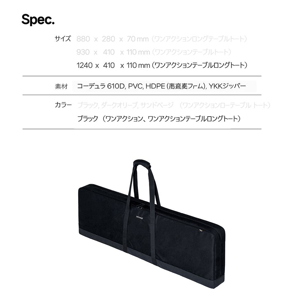 Snow Peak ワンアクション テーブル ロングを安全に収納できるよう設計された専用トートバッグで、