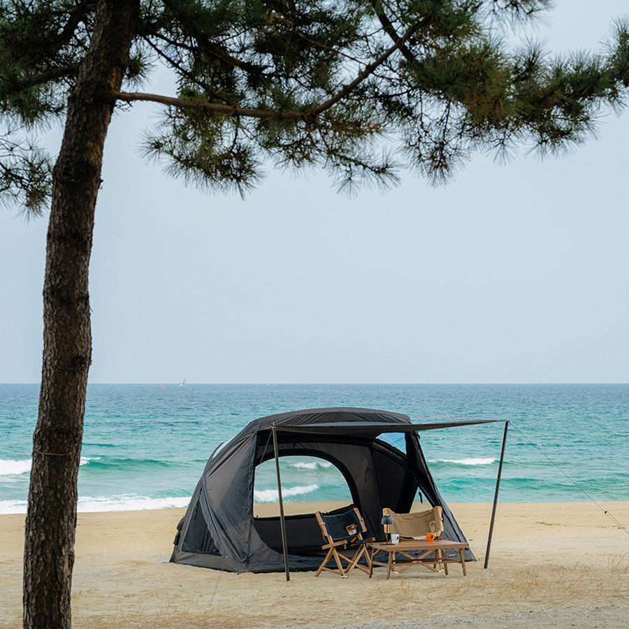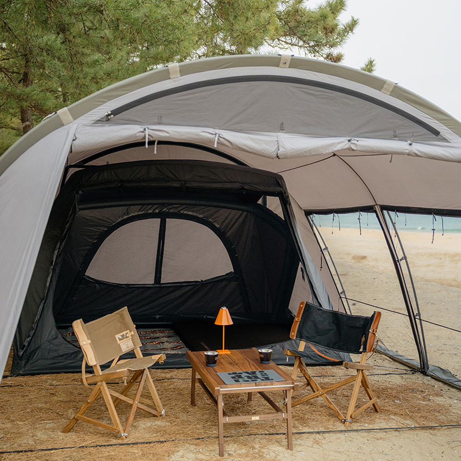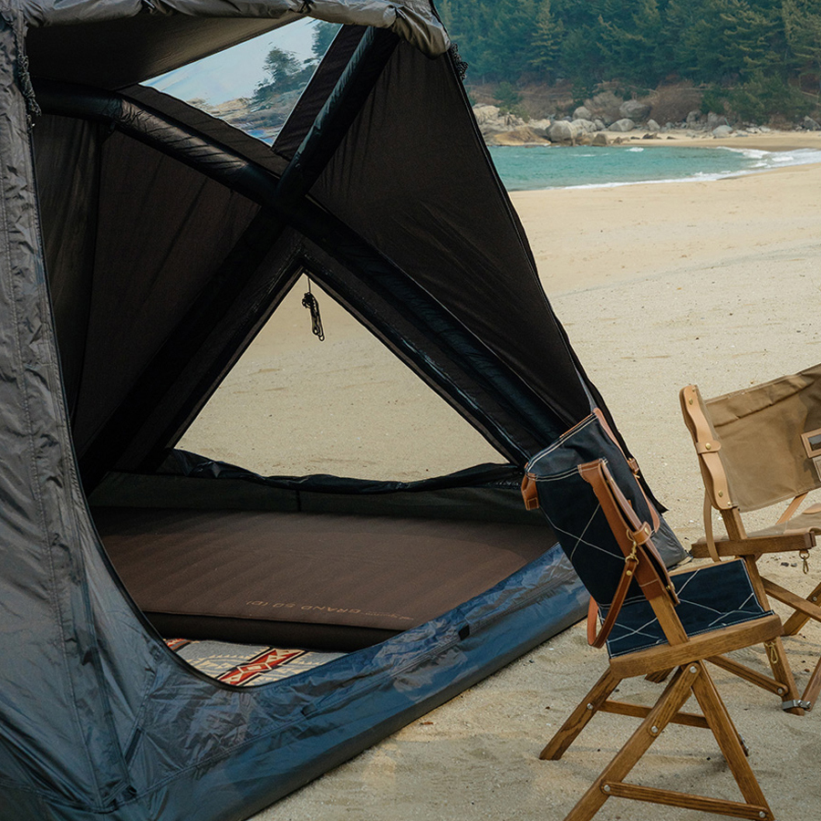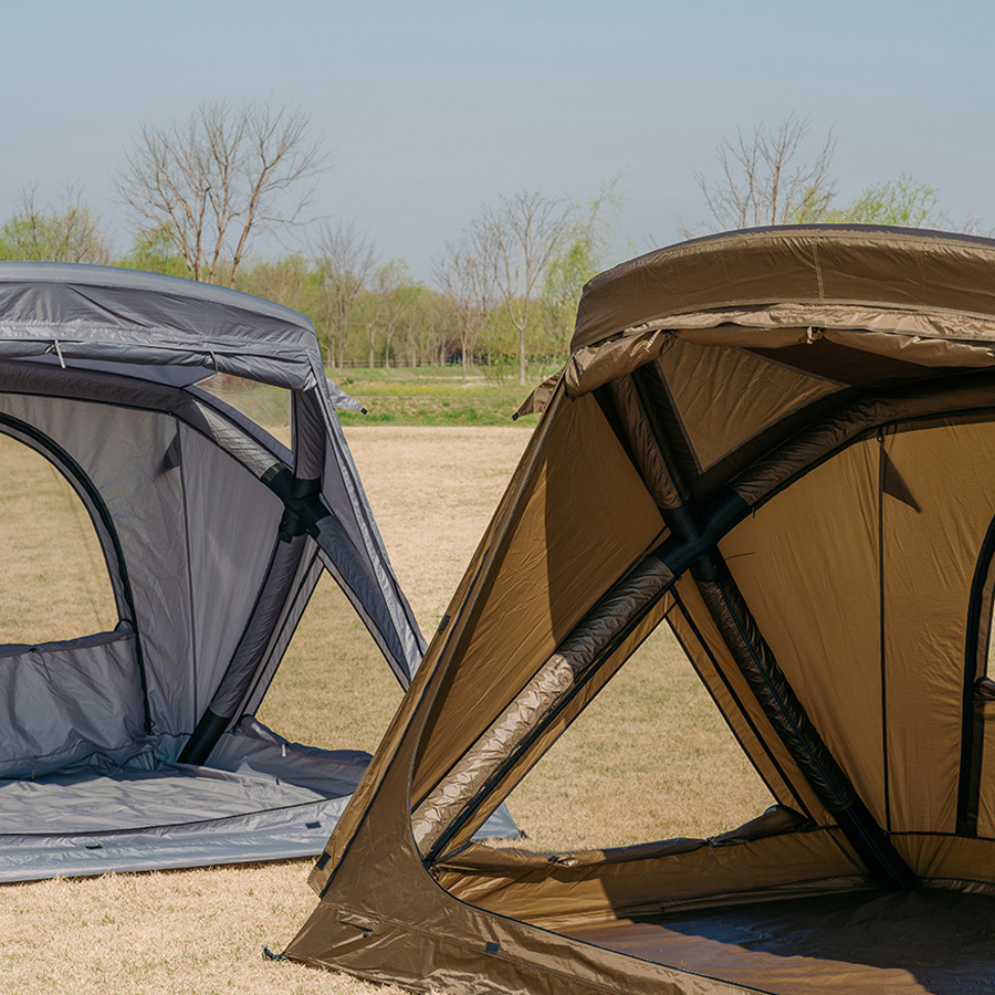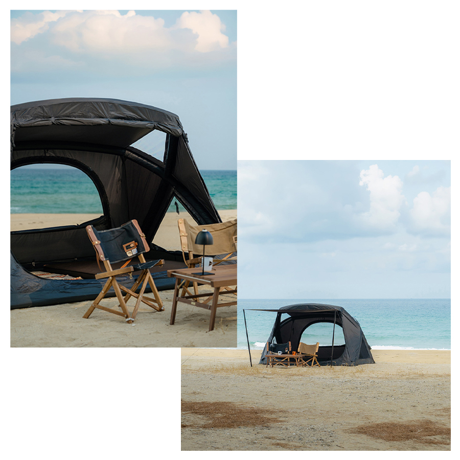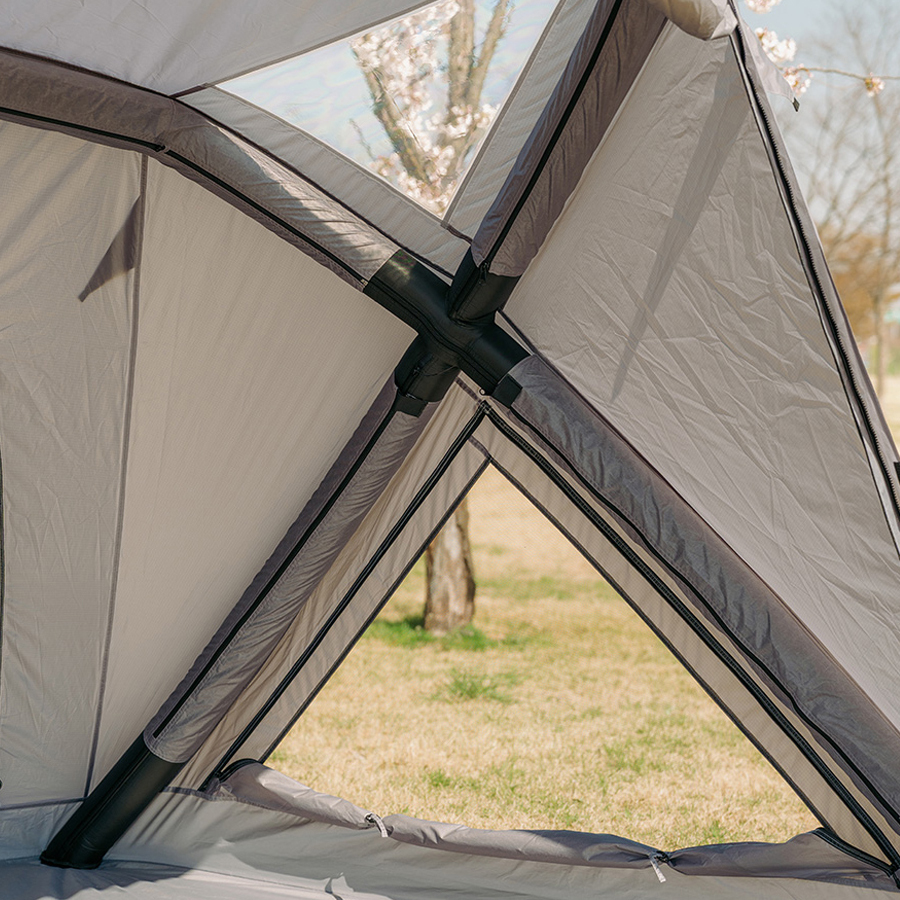 ポール不要、空気を入れるだけで設営できるエアテントで、