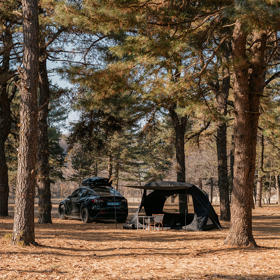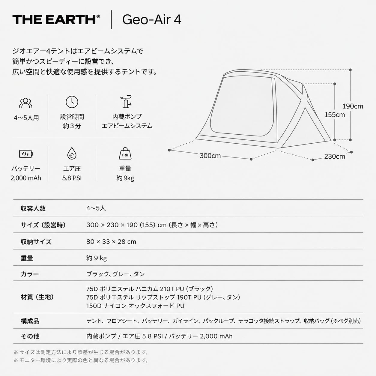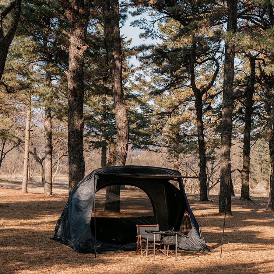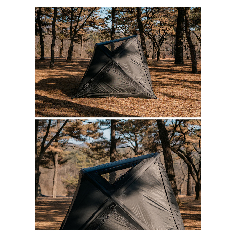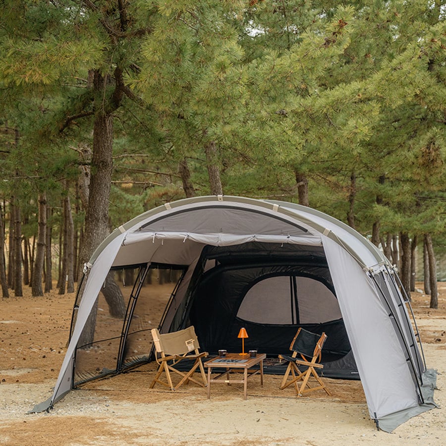 ポール不要、空気を入れるだけで設営できるエアテントで、
